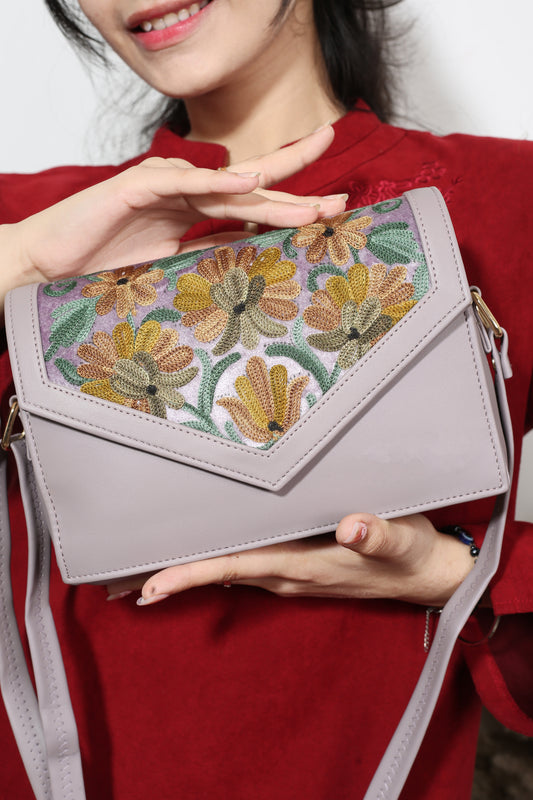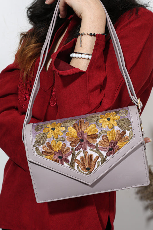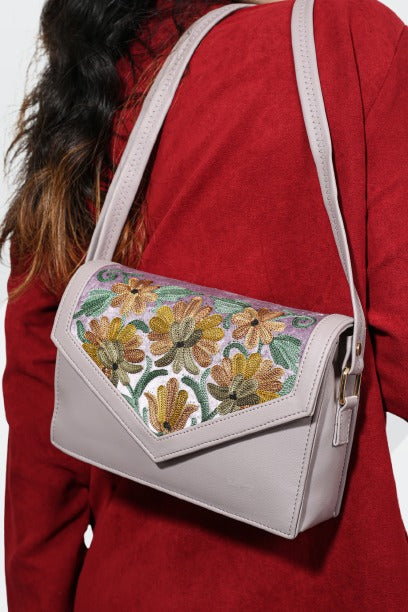 Sling Bag – Unique Hand-Embroidered Sling Bag with Elegant Floral Motif