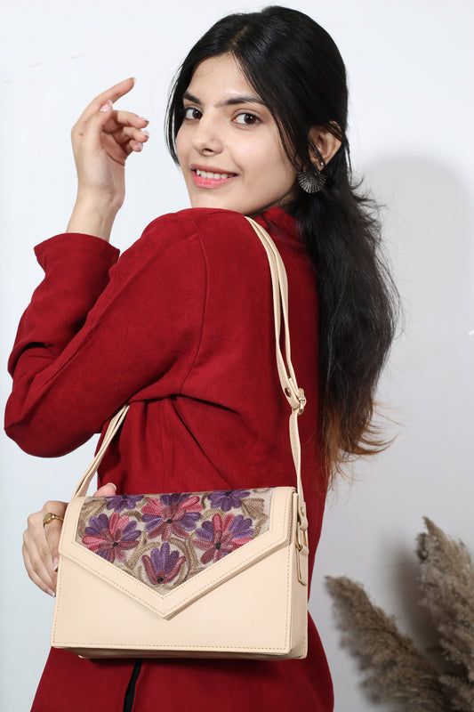 Sling Bag – Chic Hand-Embroidered Sling Bag with Intricate Floral Design