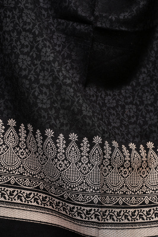 Elegant Self-Design Shawl Black – Timeless Kashmiri Craftsmanship – Weaving Mystery Collection