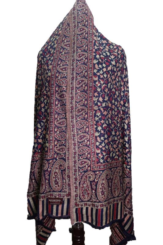 Blue & Maroon Kani Shawl – Timeless Handcrafted Elegance