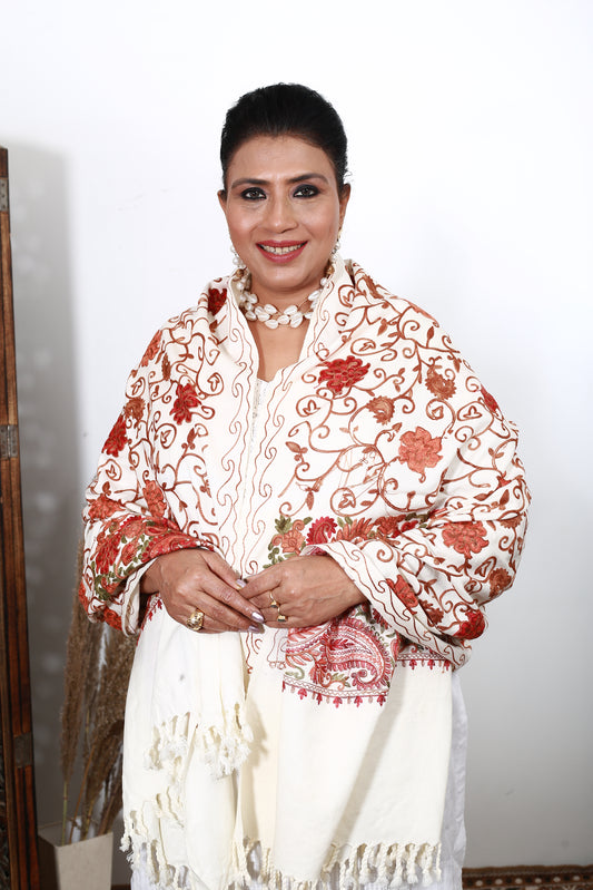 Luxury Aari Work Kashmiri Shawl – Exquisite Hand-Embroidered Wool Wrap – Soft, Warm & Lightweight – Perfect Gift for Elegant Women