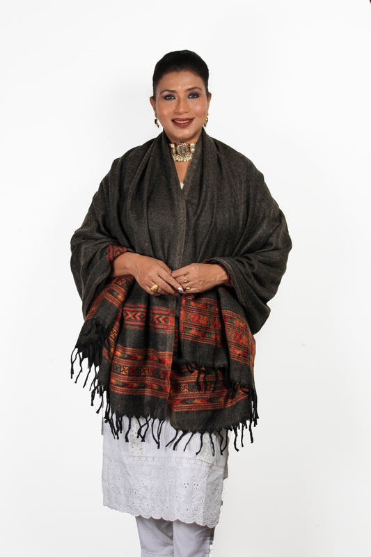 Tibetan Shawl – Authentic Kashmiri Wool with Intricate Handwork