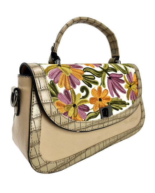 Sling Handbag – Hand-Embroidered Sling with Colorful Flower Patterns for Women