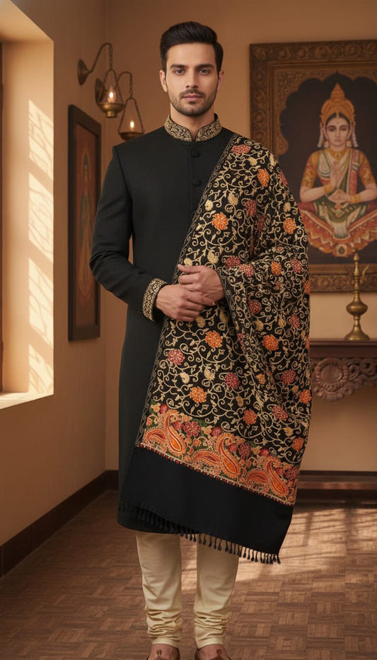 Black Aari Shawl – Hand-Embroidered Kashmiri Masterpiece | Only 1 Piece Available