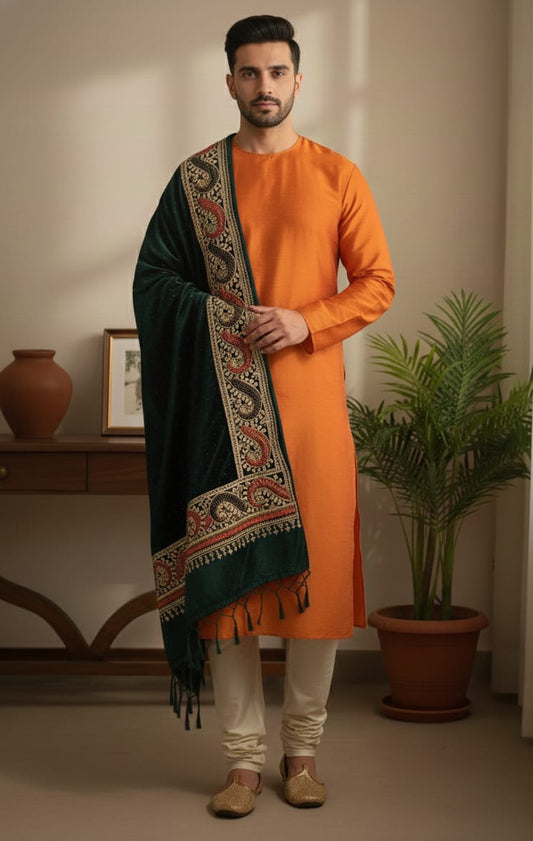 BLACK JAM KHAMBHADIYA Hand Men SHAWL –IN Black with Golden Pattern.