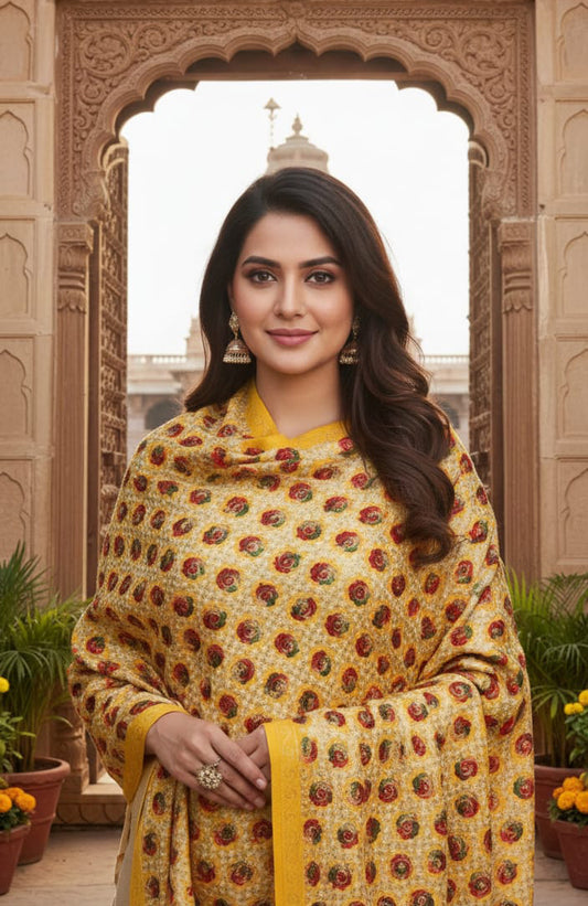 Yellow Chinar Kashmiri Embroidered Shawl – Premium Handcrafted shawl