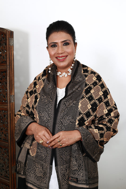 Wedding Shawl Black And gold – Handcrafted Kashmiri Shawl with Stunning Bridal Embroidery