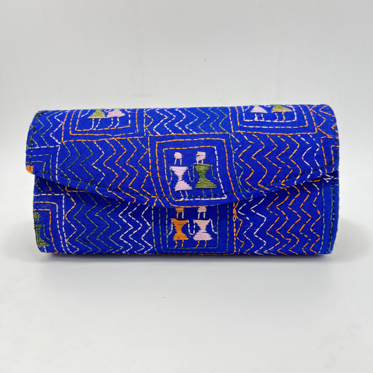 Exclusive Kantha Stich Hand Embroidered Blue Clutch Bag from Kolkata
