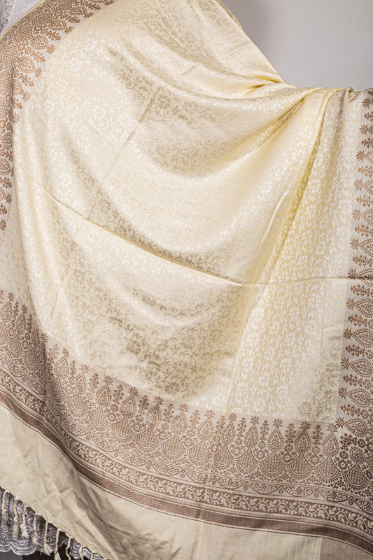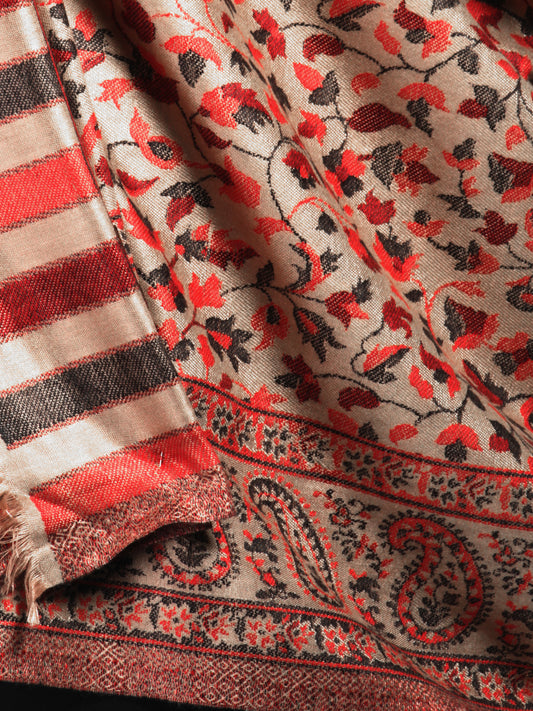 Elegant Self-Design Shawl Cream and wine – Timeless Kashmiri Craftsmanship – Weaving Mystery Collection
