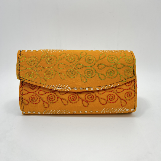Exclusive Kantha Stich Hand Embroidered Mustard Clutch Bag from Kolkata