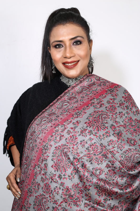 Lagdi Patta Shawl – Beautiful Hand-Embroidered Kashmiri Woolen Shawl with Rich Lagdi Patta Craftsmanship
