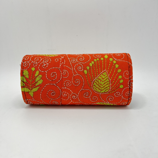 Exclusive Kantha Stich Hand Embroidered Orange Clutch Bag from Kolkata