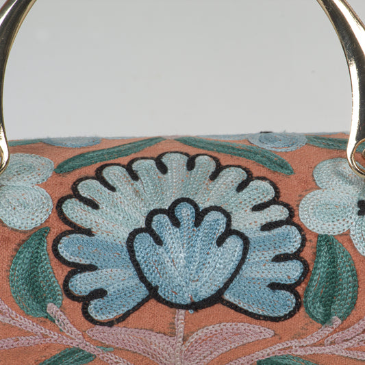Duffle Bag – Intricate Hand-Embroidered Mini Duffle with Vibrant Floral Motif