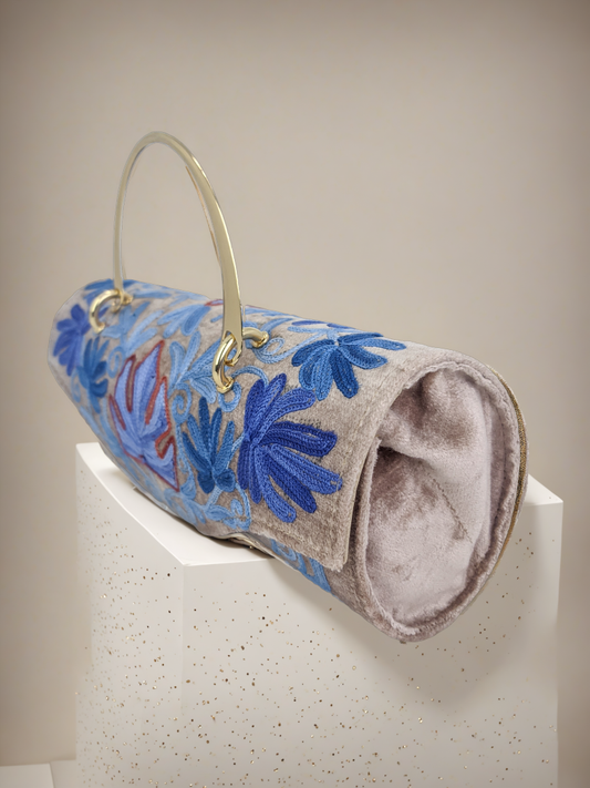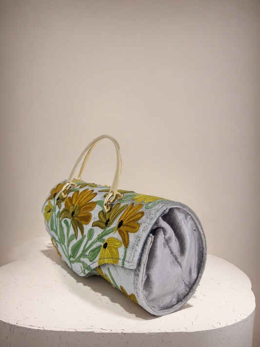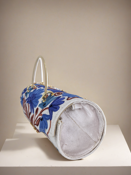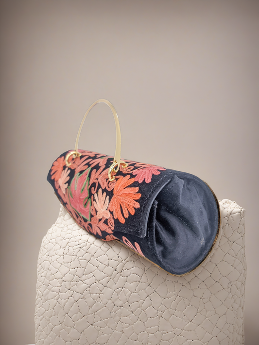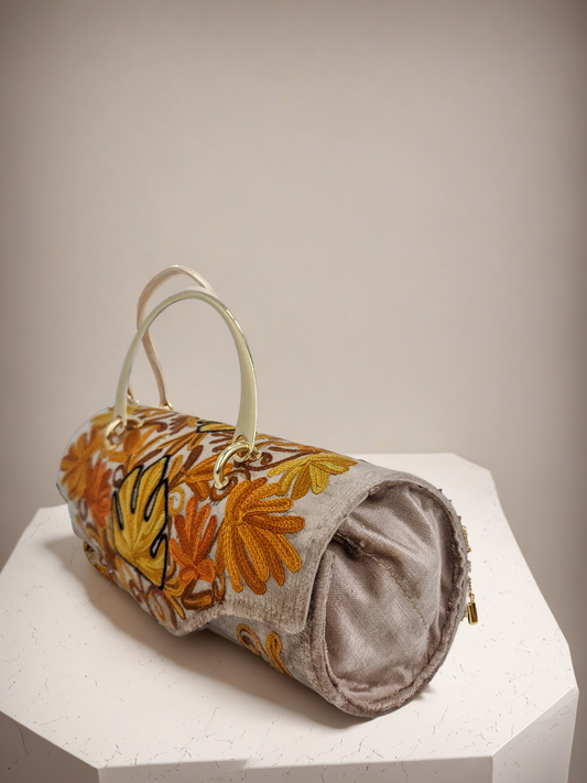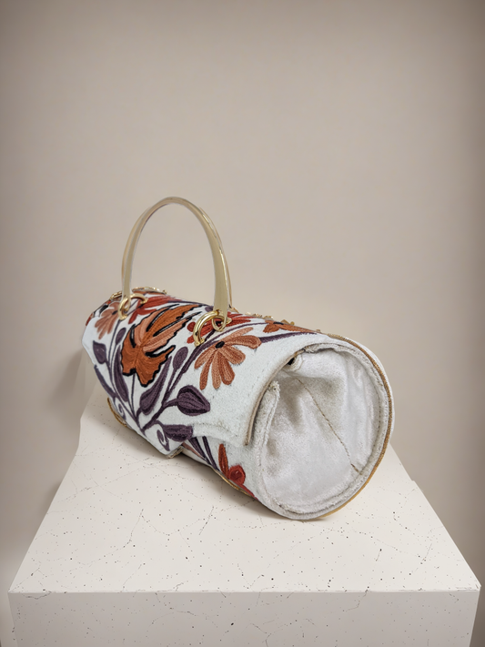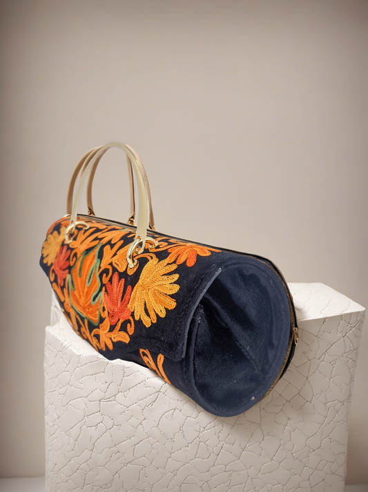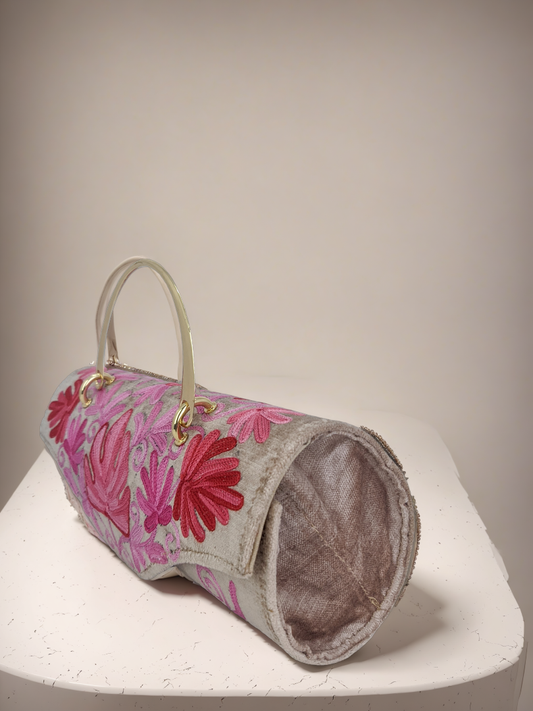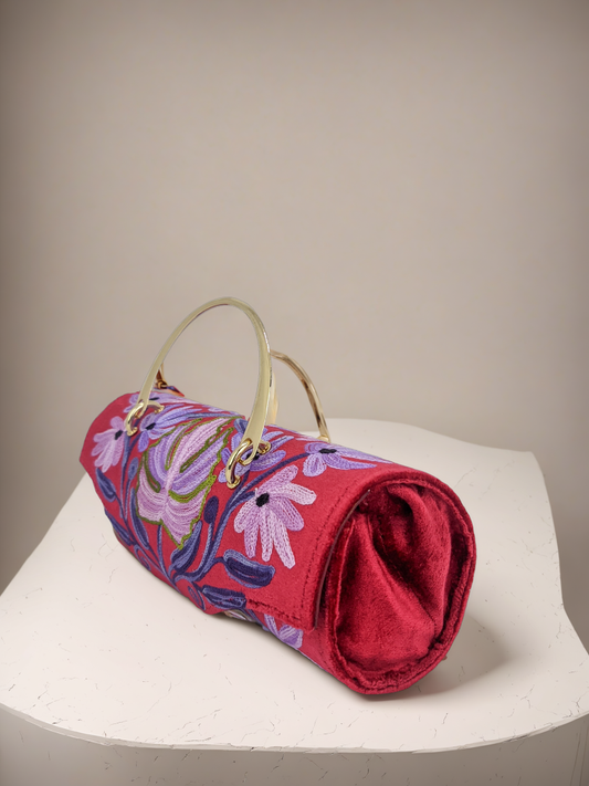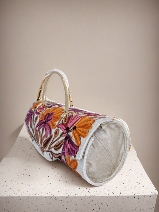 Duffle Bag – Hand-Embroidered Mini Duffle with Vibrant Floral Accents