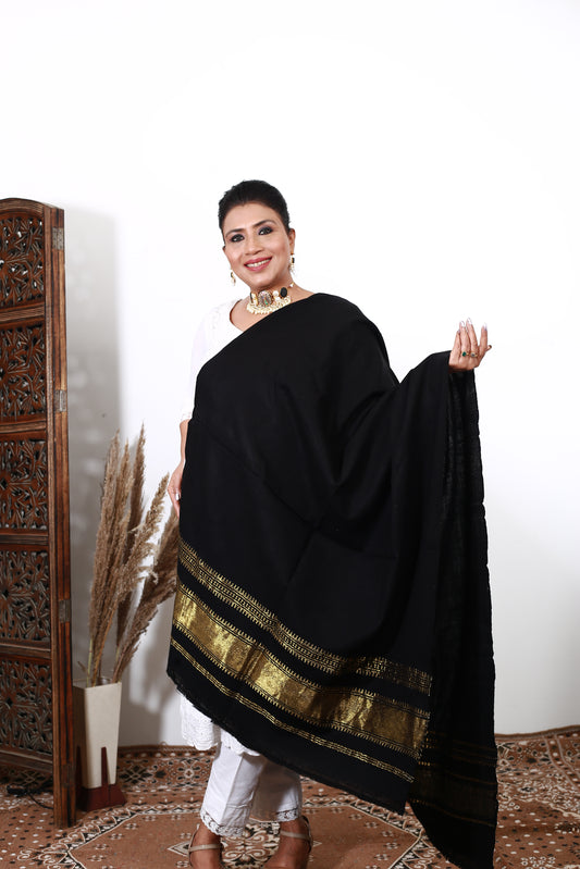 Black Jam Khambadiya Shawl – Traditional Handwoven Winter Shawl