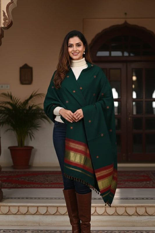 Teal Green Zari Shawl – Elegant, Festive & Timeless for women.