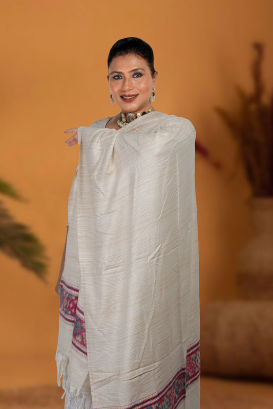 Elegant Eska Stole – Soft Silk Wrap with Beautiful Handcrafted Zari Detailing
