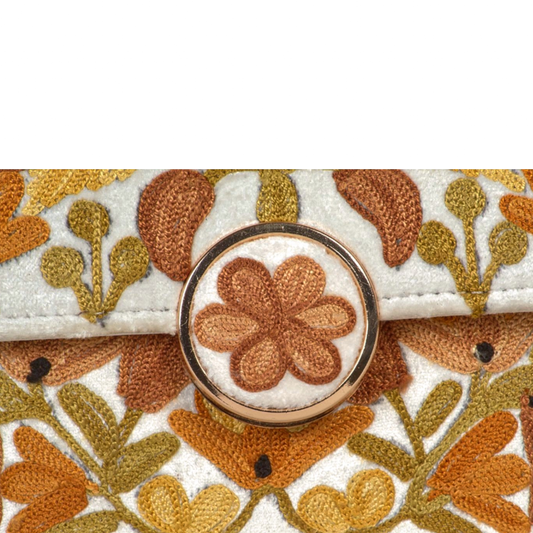 Metal Sling Bag – Hand-Embroidered Sling Bag with Metal Accents and Floral Designs