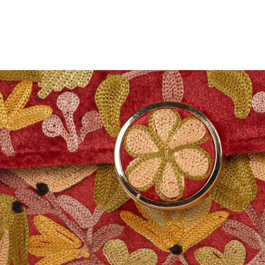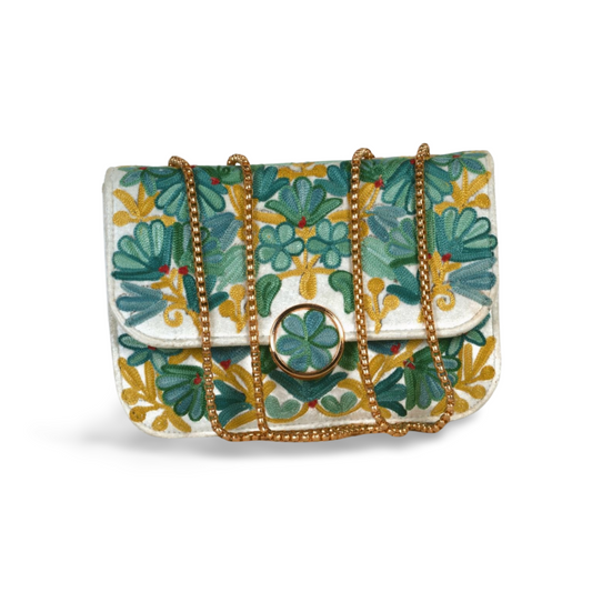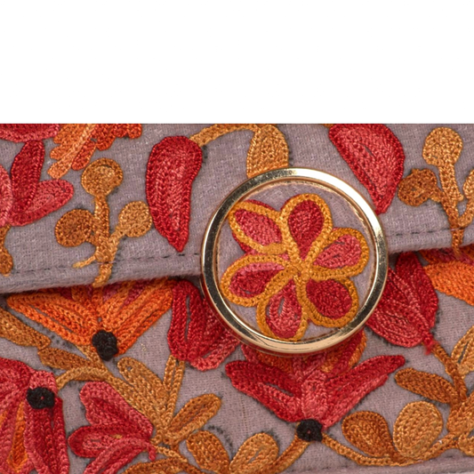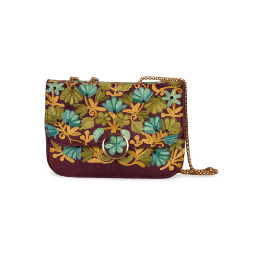 Metal Sling Bag – Artistic Metal Sling Bag with Colorful Hand-Embroidered Floral Designs