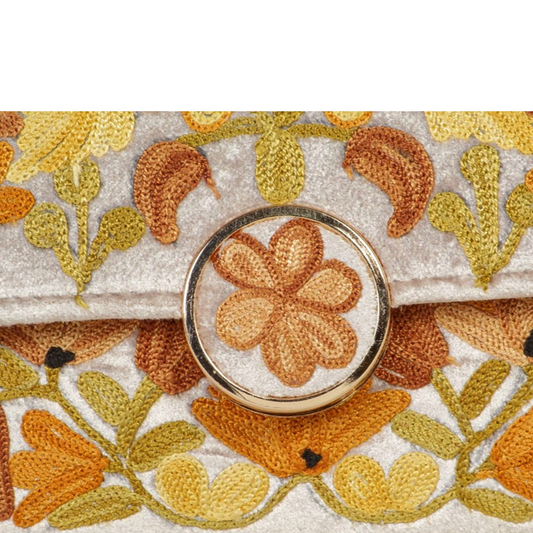 Metal Sling Bag – Unique Hand-Embroidered Metal Sling with Stunning Floral Designs