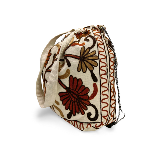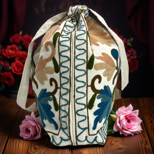 Cotton Duffle Tote Bag with Kashmiri Embroidery