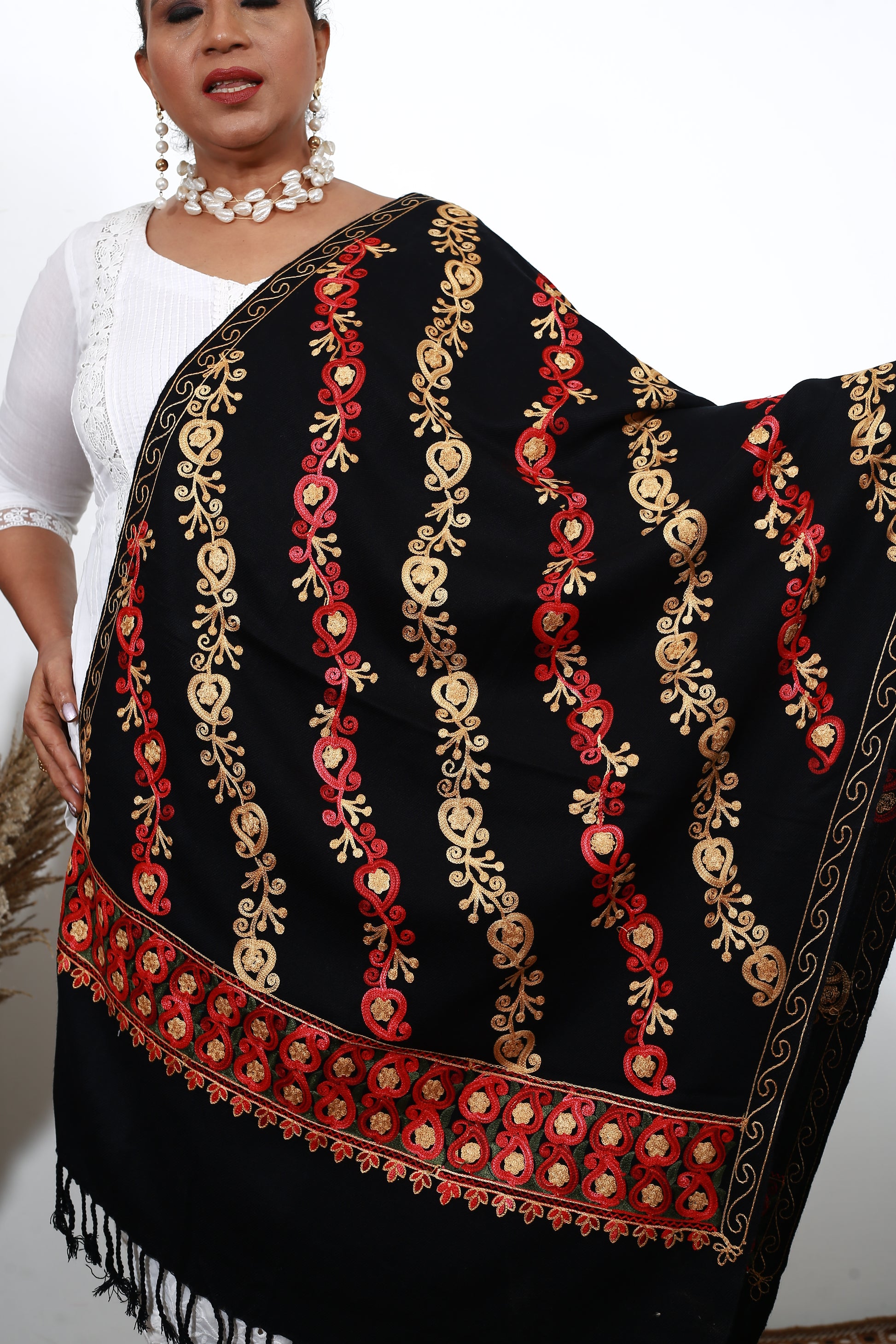 Black Aari Shawl – Handcrafted Kashmiri Stole with Intricate Aari Embroidery