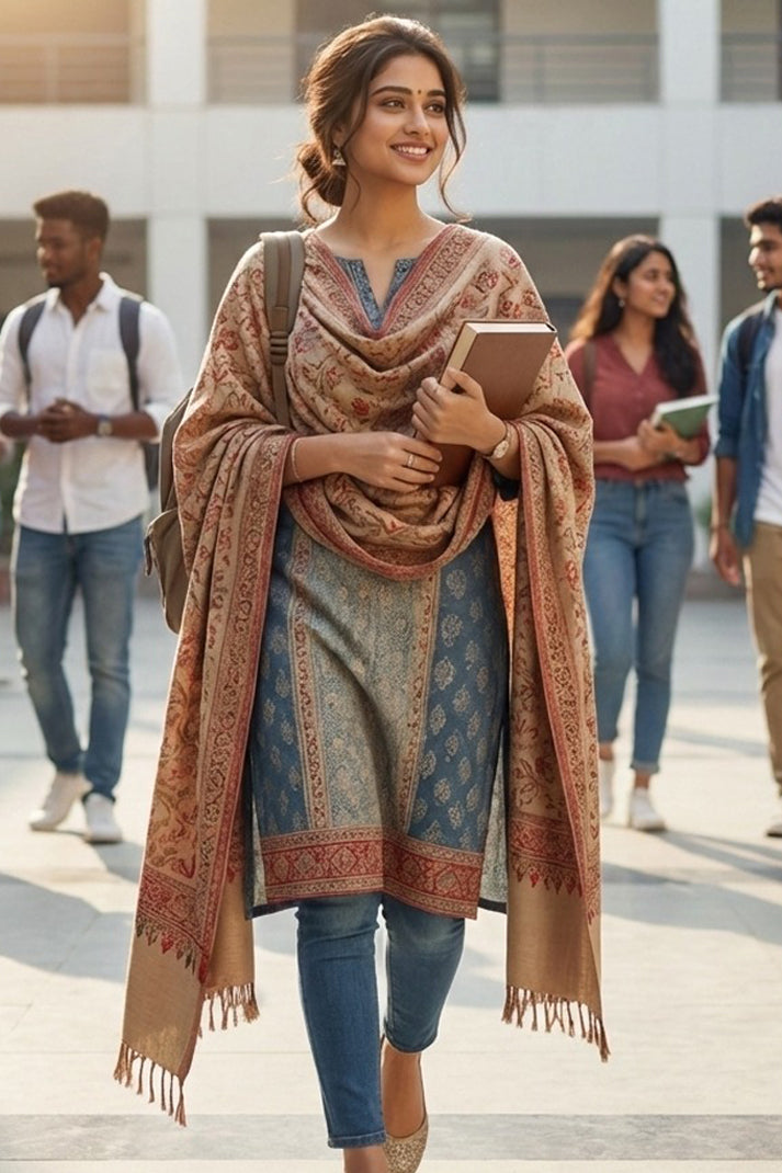 Designed for special occasions, weddings, and celebrations, the shawl drapes beautifully while offering warmth and sophistication. The intricate patterns reflect centuries-old artistry, making it a perfect heirloom piece or a luxurious gift for festive moments.