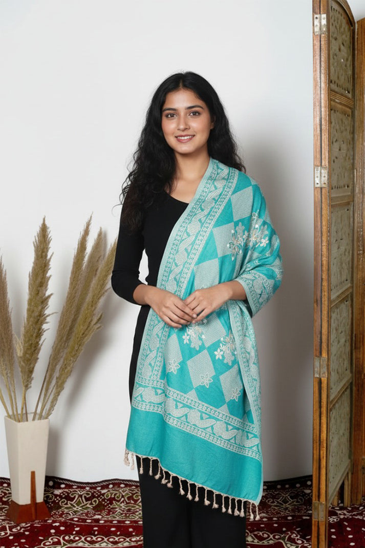 Wrap yourself in luxury with our exquisite stole, featuring a cream-colored base adorned with intricate multicolor floral hand embroidery. This stole seamlessly combines the softness of blended pashmina wool with the finesse of traditional Kashmiri craftsmanship, making it a timeless addition to your wardrobe.