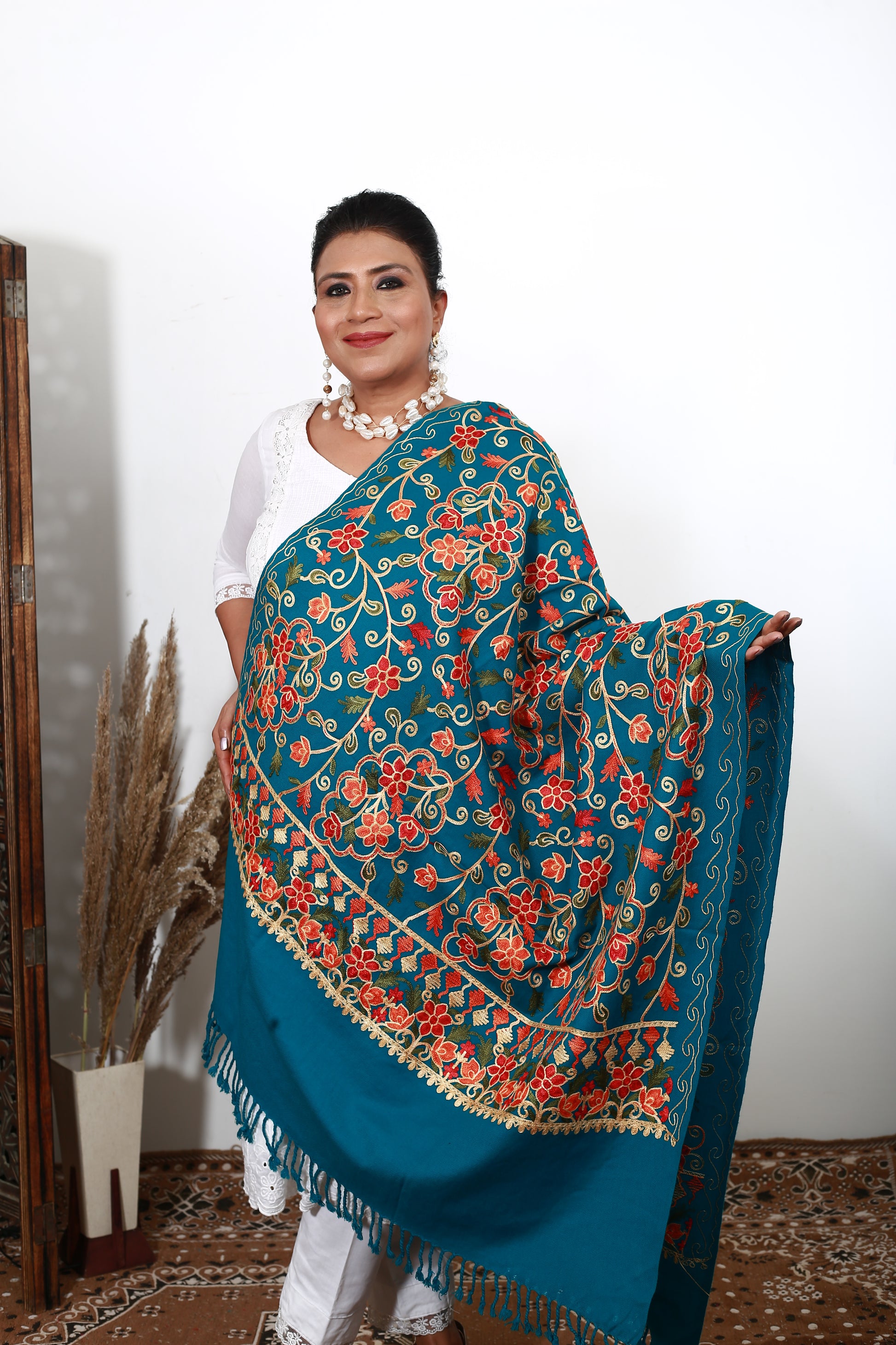 Exquisite Hand-Embroidered Aari Shawl – Kashmiri Wool Wrap – Soft, Warm & Lightweight – Artisanal Craftsmanship – Traditional Elegance for Women