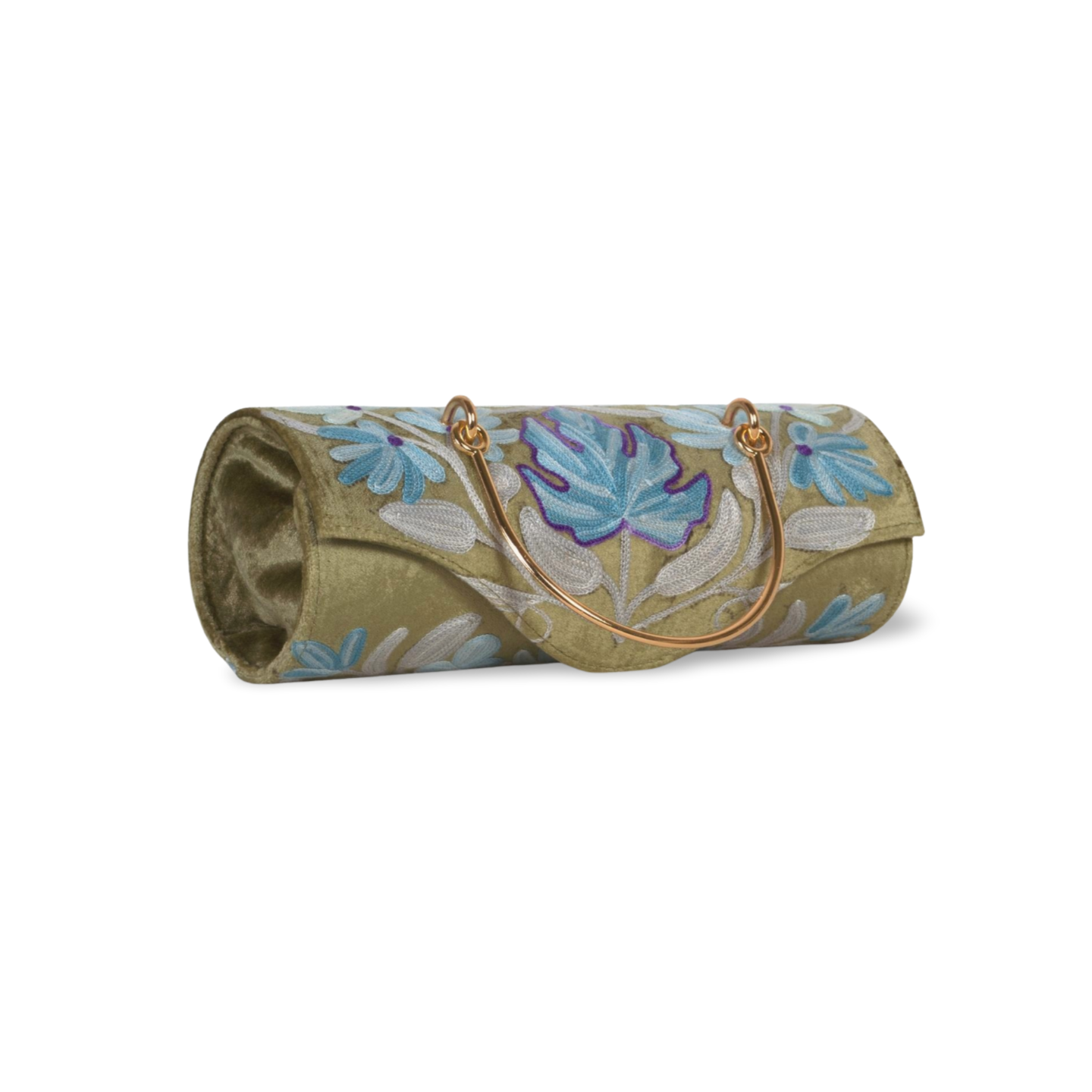 Experience the art of Kashmiri craftsmanship with Weaving Mystery’s small duffel bag, a true blend of elegance and tradition. Each bag features authentic Kashmiri hand embroidery, meticulously crafted by skilled artisans using premium materials. With its rounded design, this bag embodies sophistication, making it an ideal accessory for any occasion. The small duffel silhouette offers a unique, luxurious touch to your everyday style.