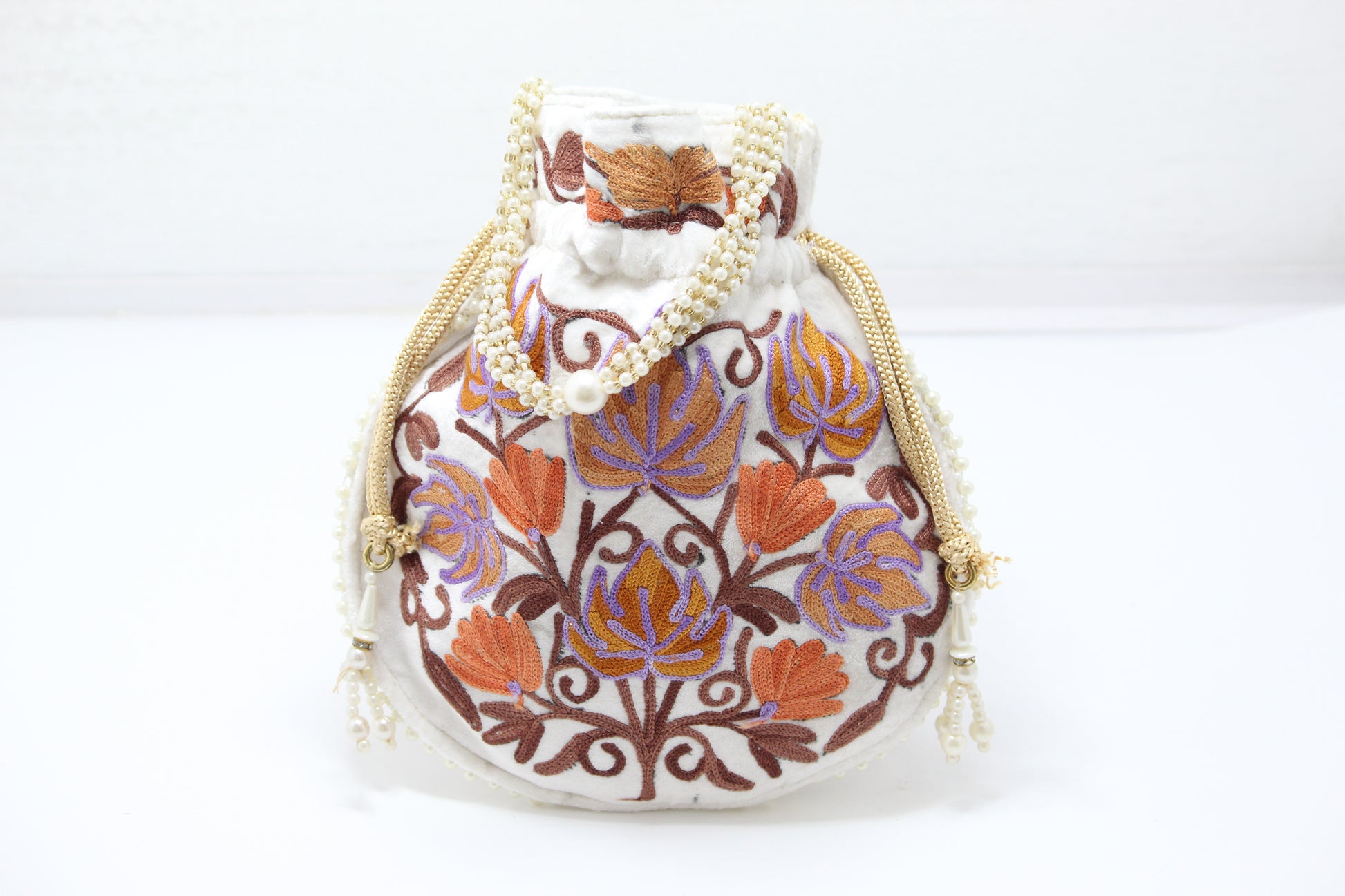 - Exquisite premium woman's handbag with intricate Kashmiri hand embroidery.