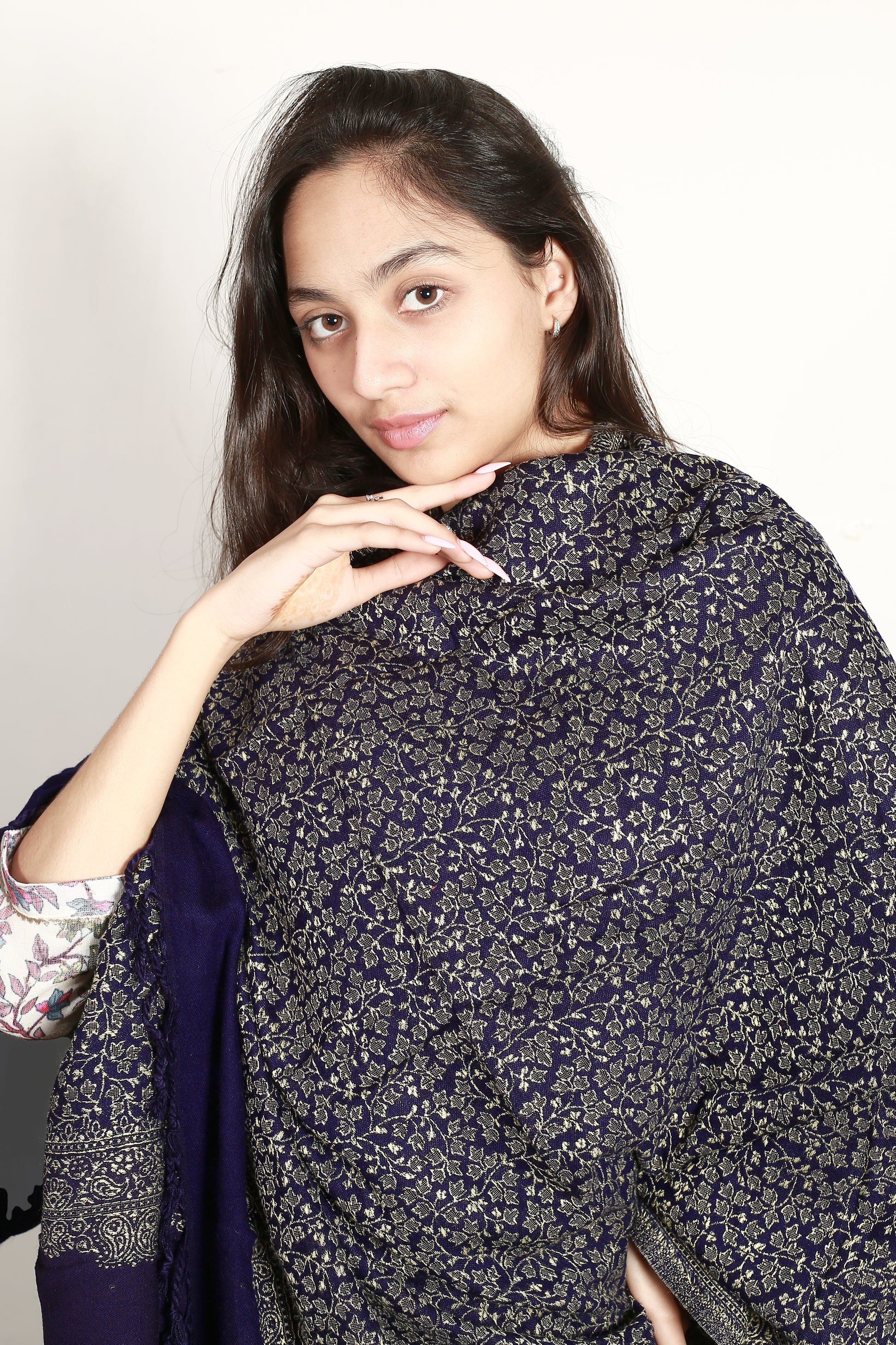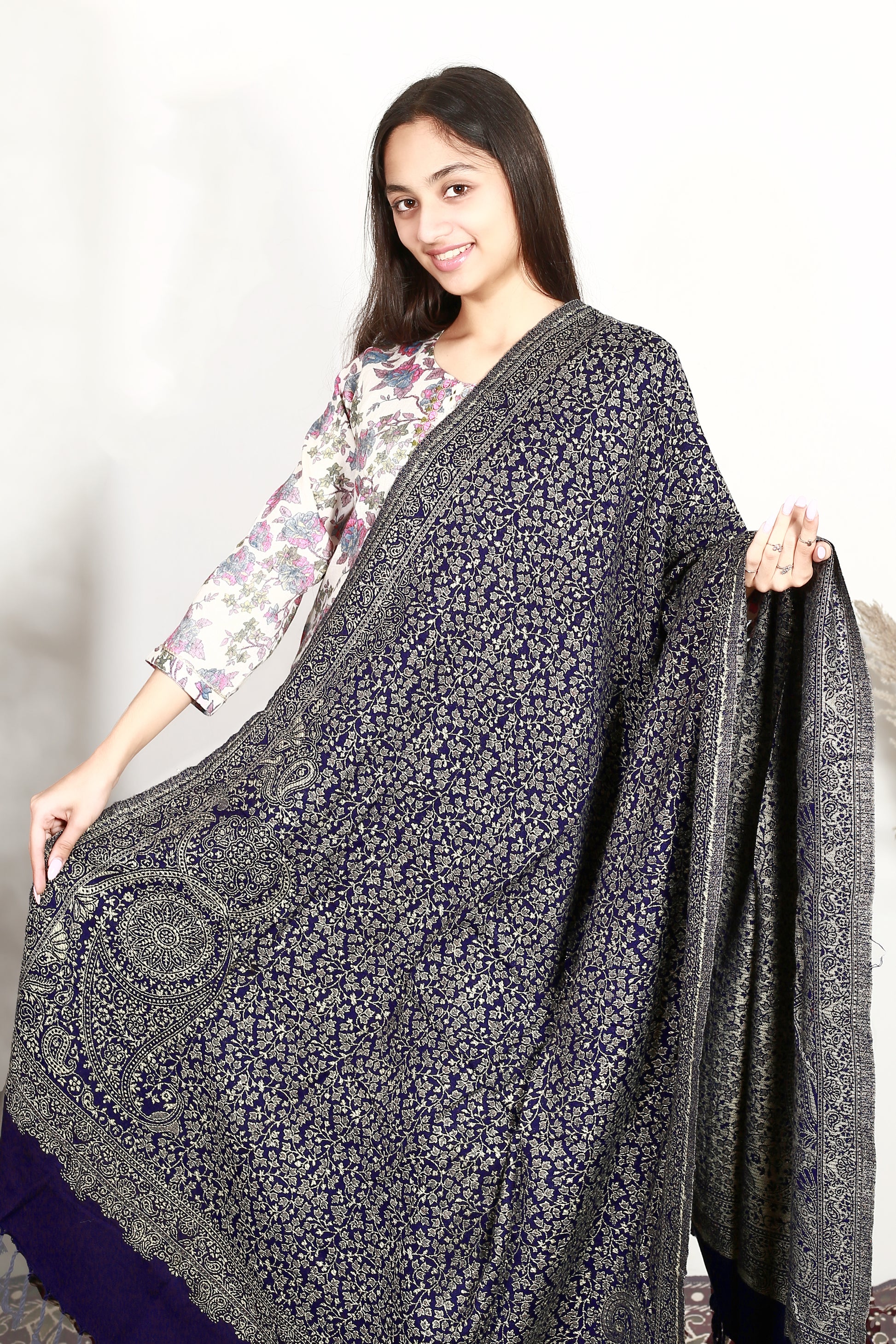 Self Zari Shawl – Elegant Kashmiri Pashmina with Fine Hand Embroidery